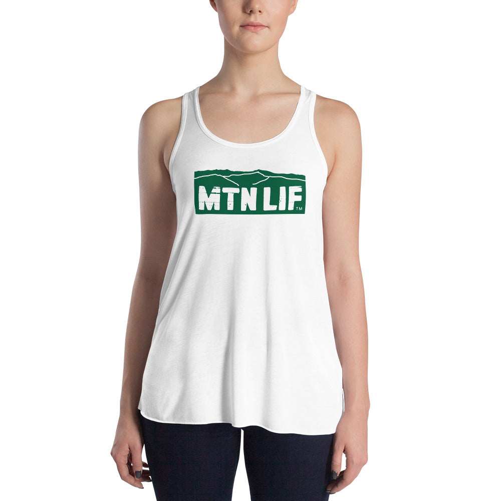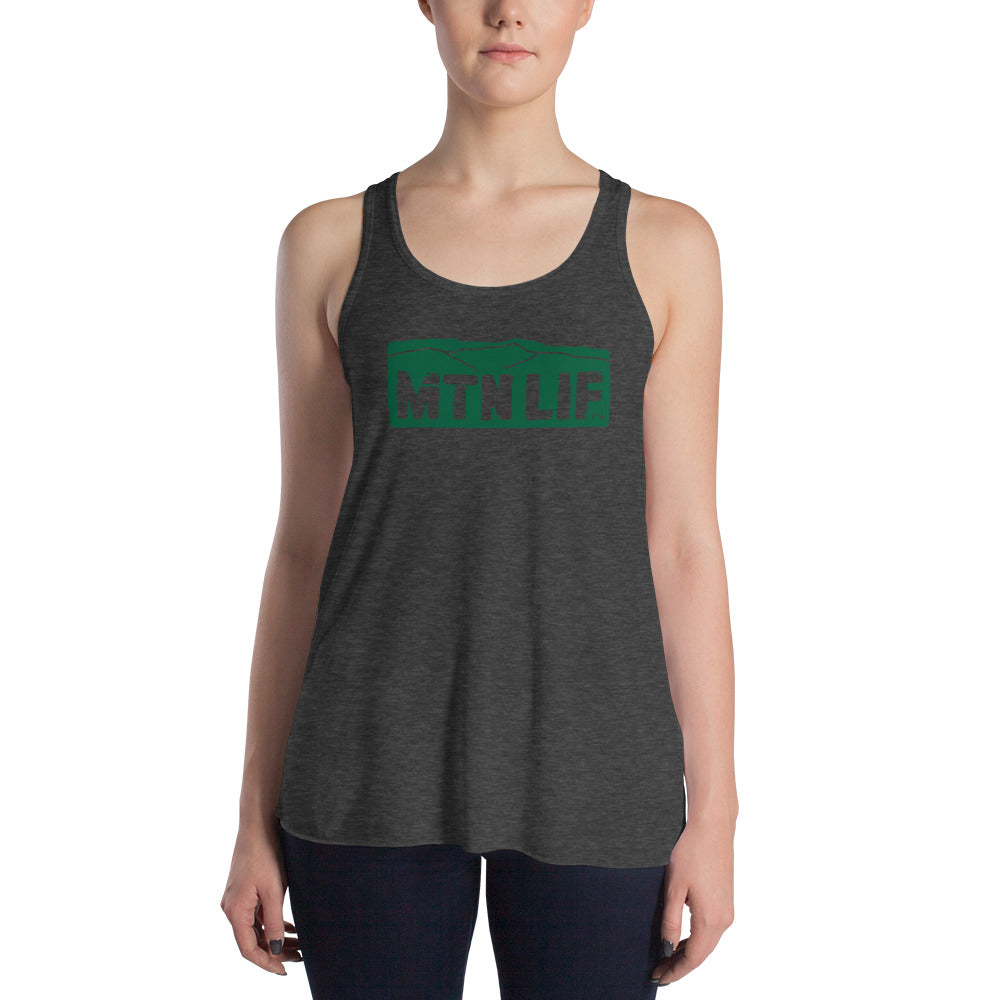 MTN LIF™ Women's Flowy Racerback Tank- GREEN mtn logo