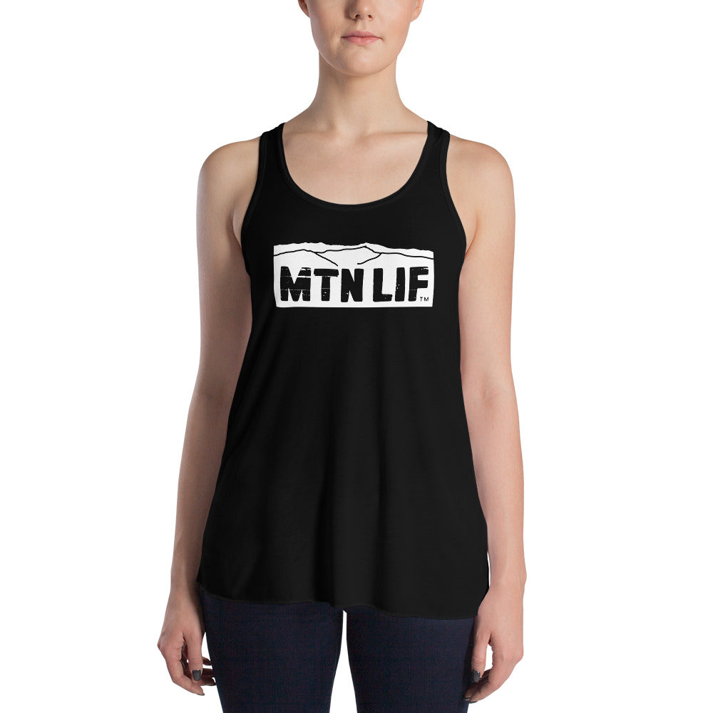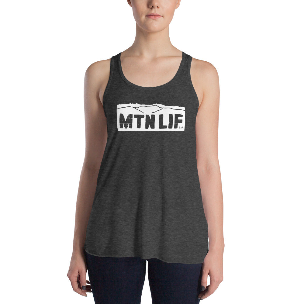 MTN LIF™ Women's Flowy Racerback Tank- WHITE mtn logo
